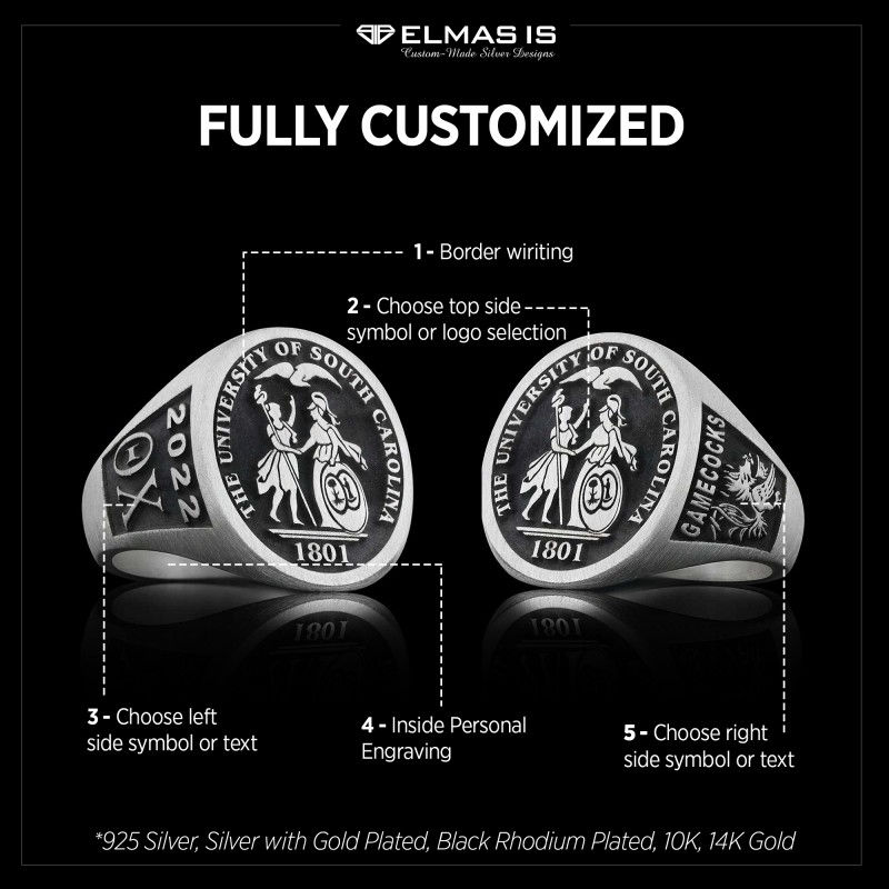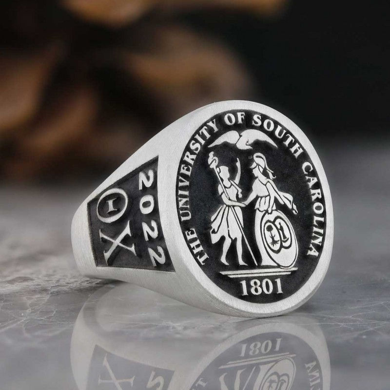Show off your pride for The University of South California with this beautiful class ring. Made with high-quality materials, this ring is a timeless keepsake that will last for years to come. Featuring the university logo and traditional colors, this ring is the perfect way to commemorate your time at USC. Whether you're a current student or a proud alumni, this class ring is a must-have accessory. Order yours today and show your Trojan spirit wherever you go!